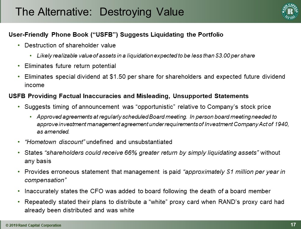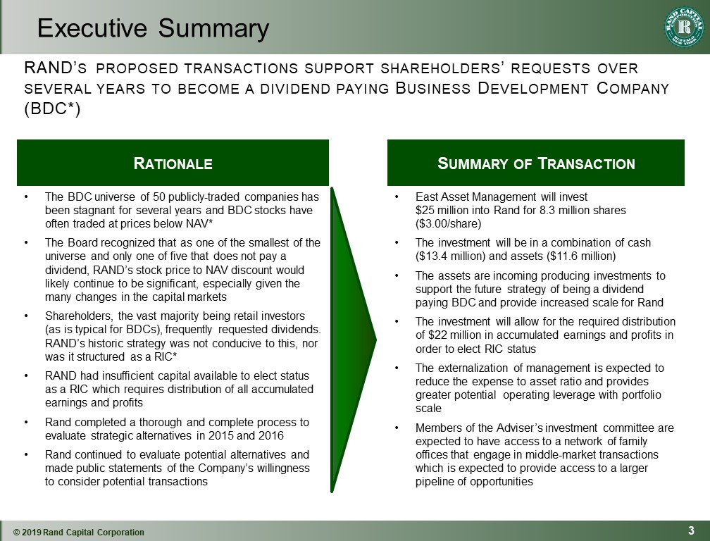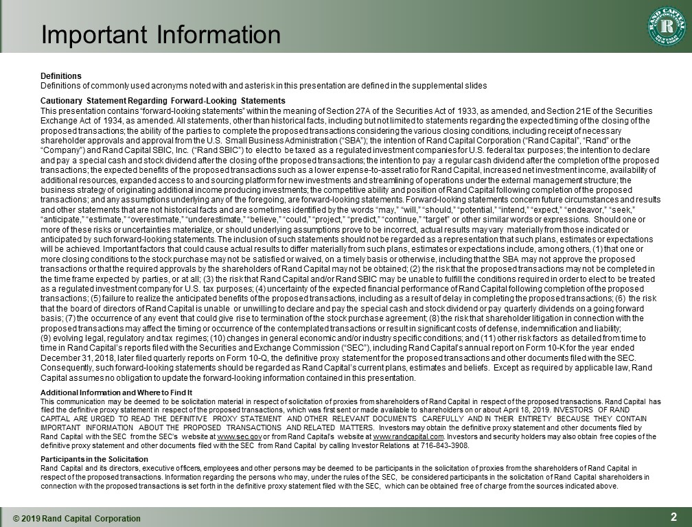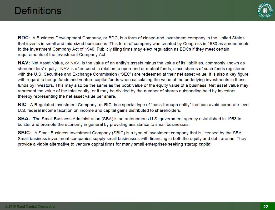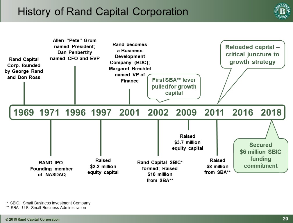 On April 29, 2019, Rand Capital Corporation began using the following investor presentation: