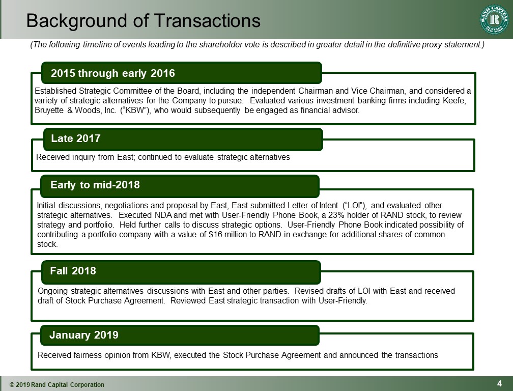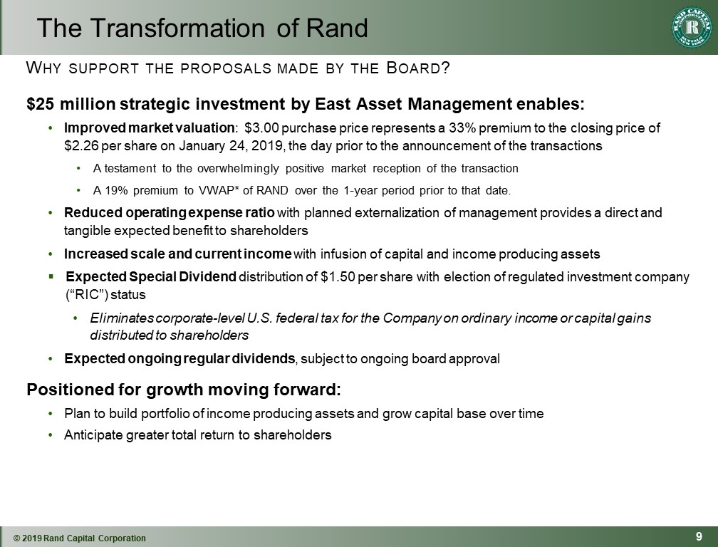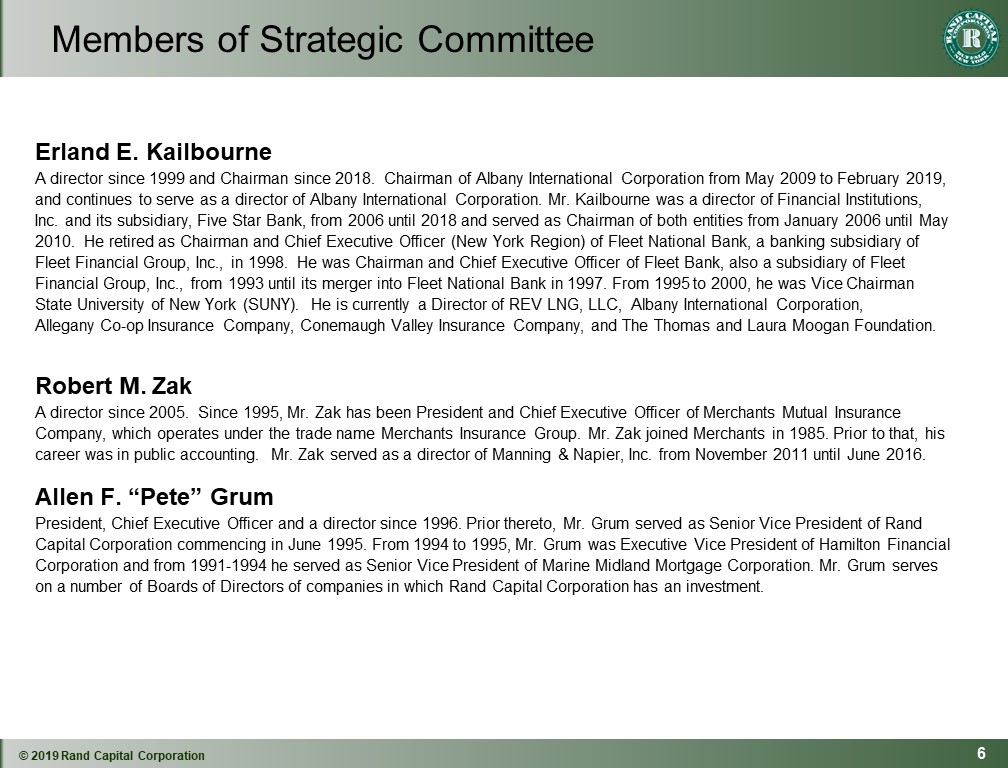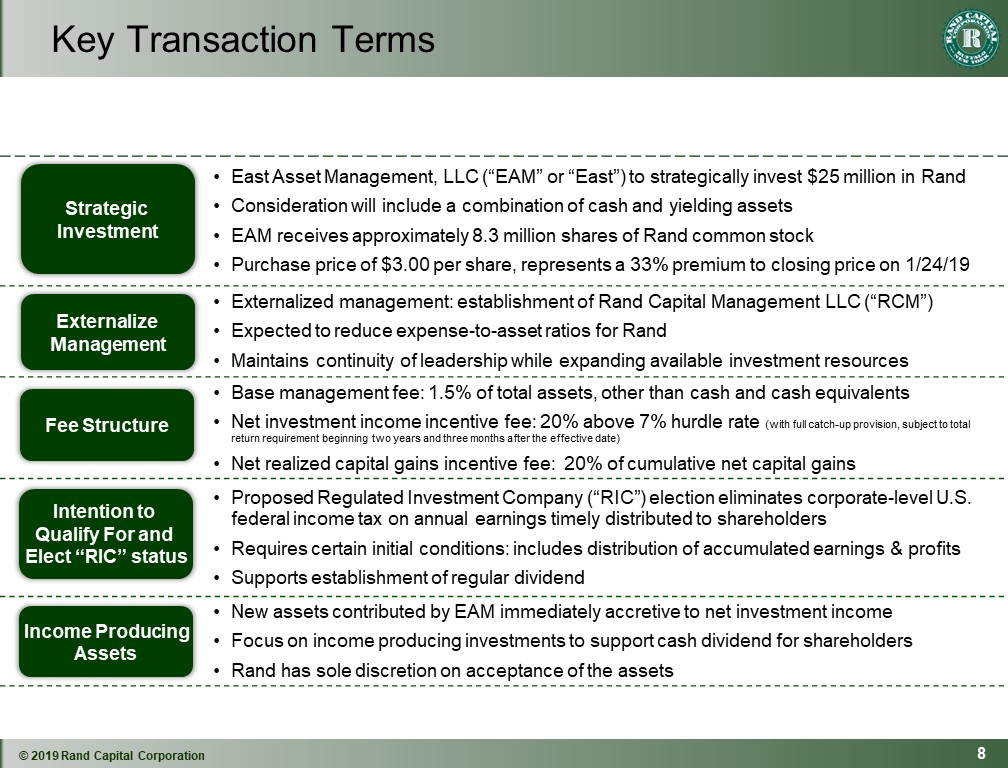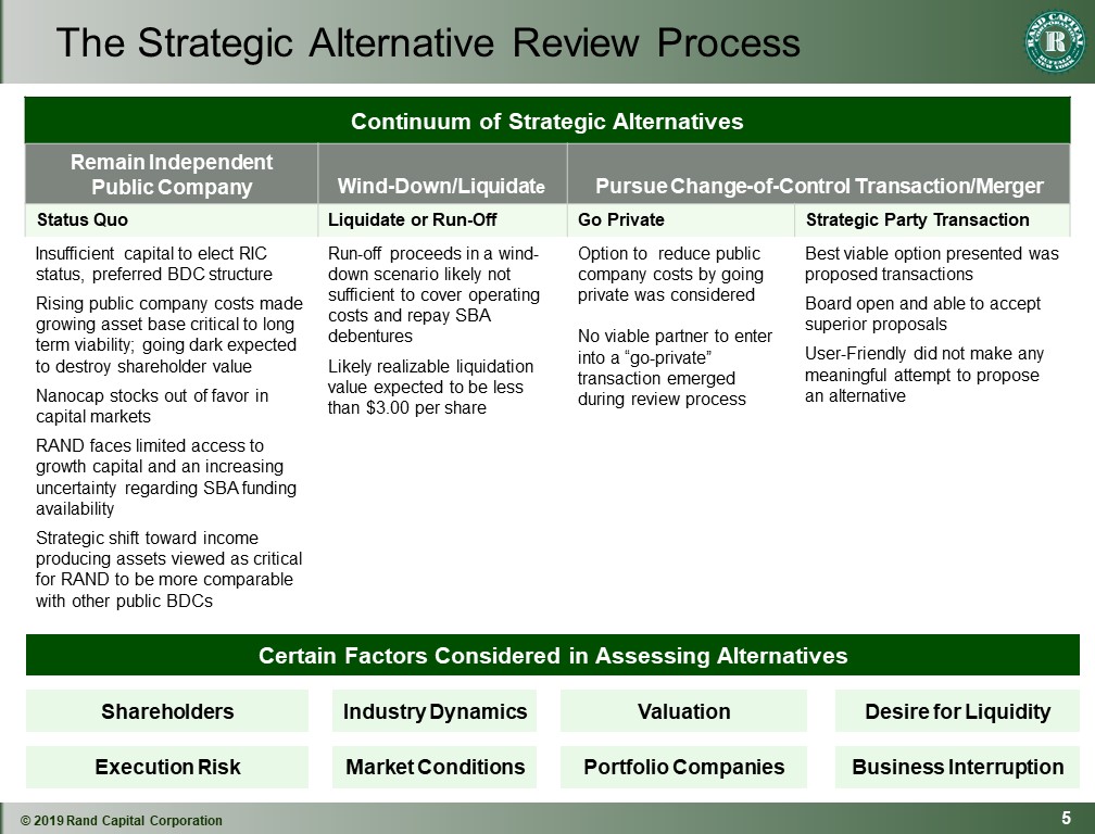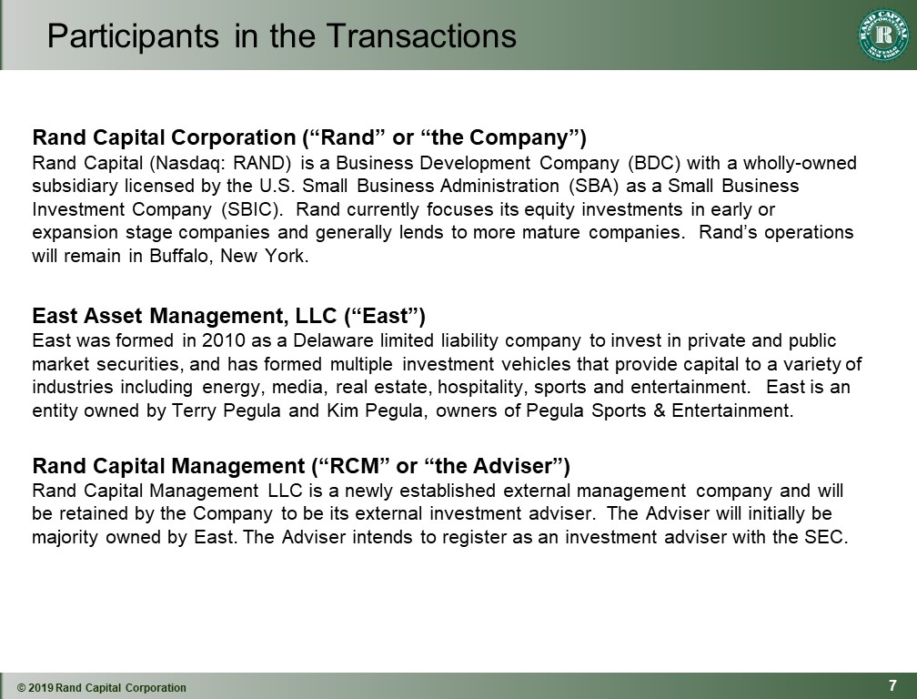 On April 29, 2019, Rand Capital Corporation began using the following investor presentation: