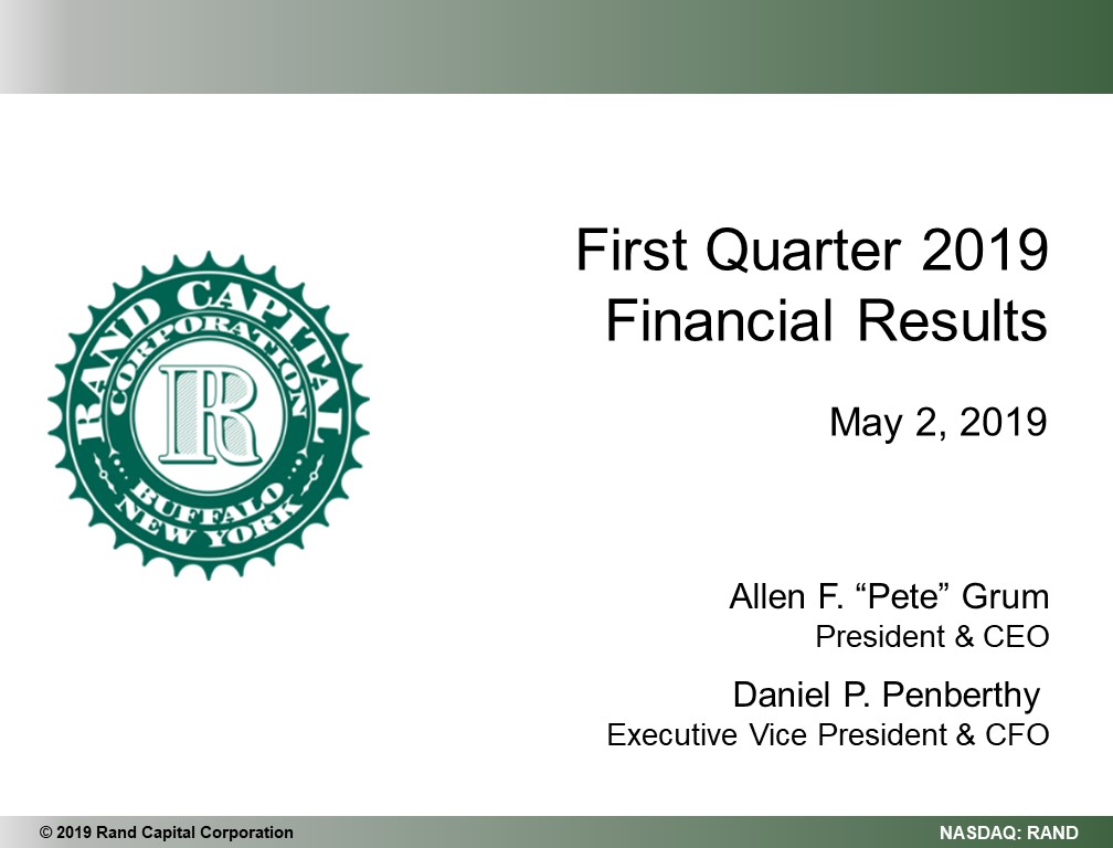 On May 2, 2019, Rand Capital Corporation used the following script for its earnings conference call for the first quarter of 2019: