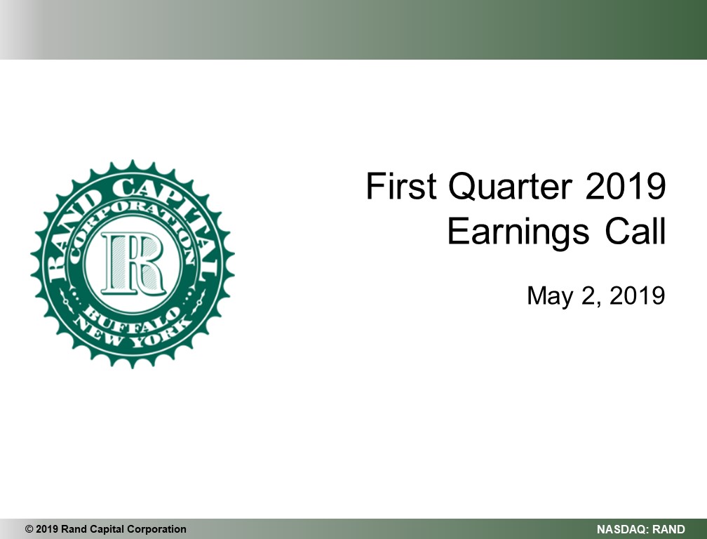 On May 2, 2019, Rand Capital Corporation used the following script for its earnings conference call for the first quarter of 2019: